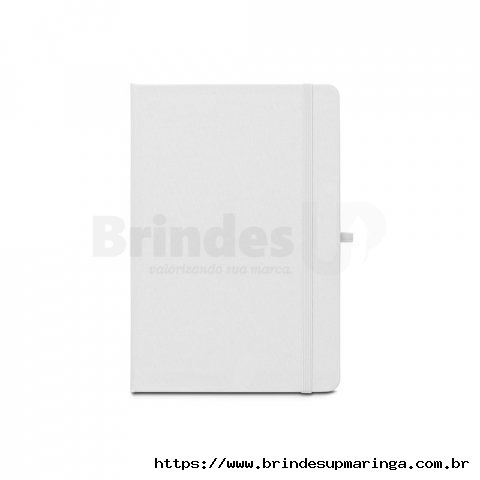Caderno A5 de capa dura, ideal para personalização em sublimação. O caderno em poliéster 100% reciclado (rPET) 300D tem 160 páginas pautadas em papel 100% reciclado cor de marfim, uma fita separadora, um suporte para esferográfica (não inclusa) e um elástico para fecho do bloco.