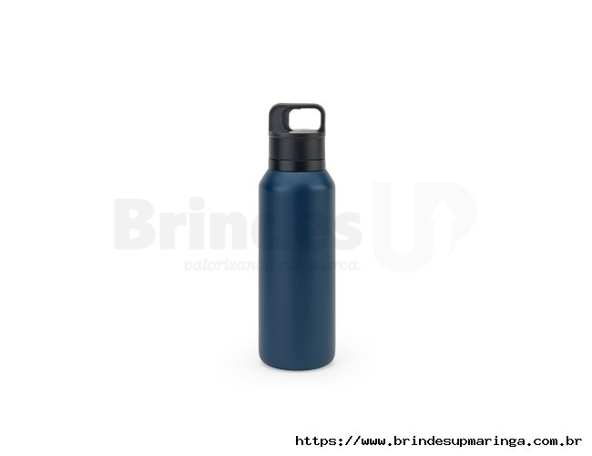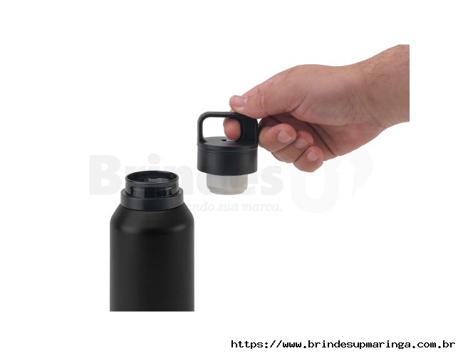 Garrafa em aço 91% inoxidável com parede dupla isolada a vácuo e botão que facilita sua abertura 590 mL