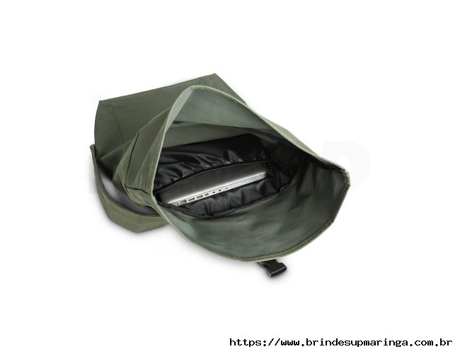 Mochila "Roll-top" para notebook em 600D e forro em 210D. Possui um compartimento principal espaçoso para notebook até 17.3", com fecho de enrolar no topo. Bolso frontal com zíper. Capacidade até 21 L. 320 x 440 x 130 mm