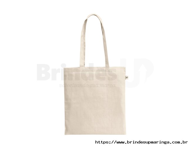 Sacola em 100% algodão orgânico (180 g/m²), com alças de 65 cm. 380 x 420 mm